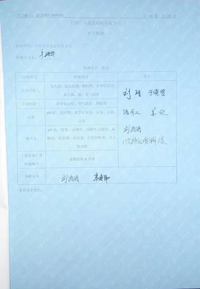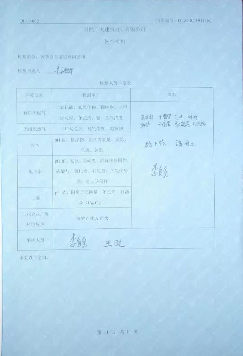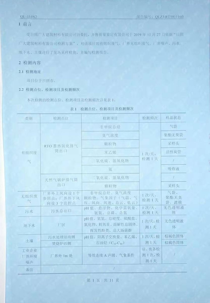 日照廣大建筑材料有限公司環(huán)保檢測報(bào)告